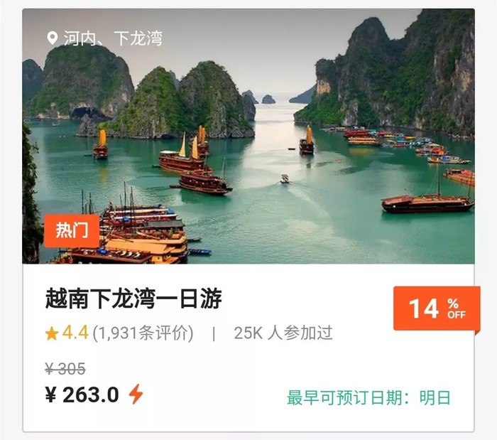 一日游原价305元,现KLOOK客路优惠价为263元,约个小伙伴或者跟其他产品凑个499元,使用满499-50的优惠后,人均238元。如果你是新用户,使用88折优惠会更划算一些~