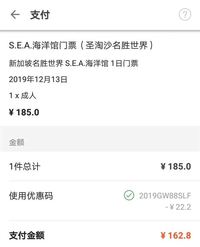 门票原价211元,现KLOOK客路优惠价为185元,叠加88折优惠(限新用户,老用户可以使用“满499-50”等满减优惠,下同),到手只需163元!省了20多块!