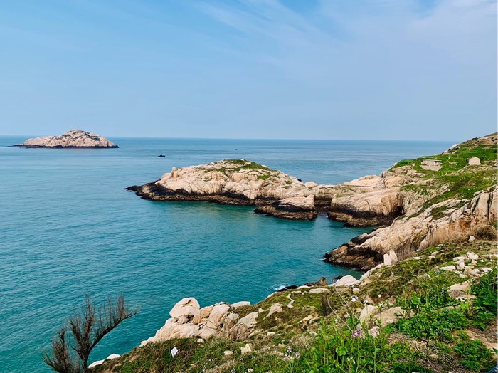 沿着玛塔线往北走最东边是佛手石,一眼望去佛手石后面是蔚蓝的大海,偶尔海上漂着一两只渔船,这里是看海上日出的绝佳地点,当然懒癌晚期患者看日落也别有一番韵味。