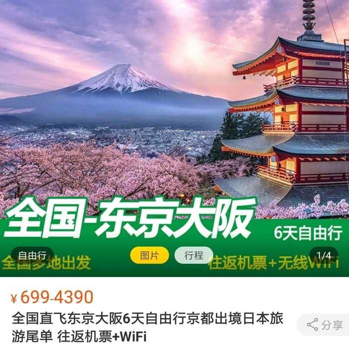 3、飞猪上部分尾单可以关注一下吧,特别是近期日本航线,飞猪上多地往返日本航线价格都在1k以下。