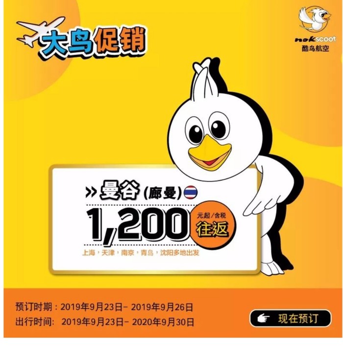 2、大鸟促销平均每月促销2—3次,本次促销价格并没有太大优势,建议考虑前往东南亚的小伙伴关注亚航大促和宿务航空促销。本次促销出行日期直至9月30日,考虑国庆提前出行的小伙伴关注一下