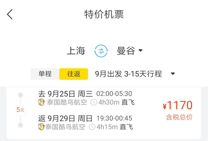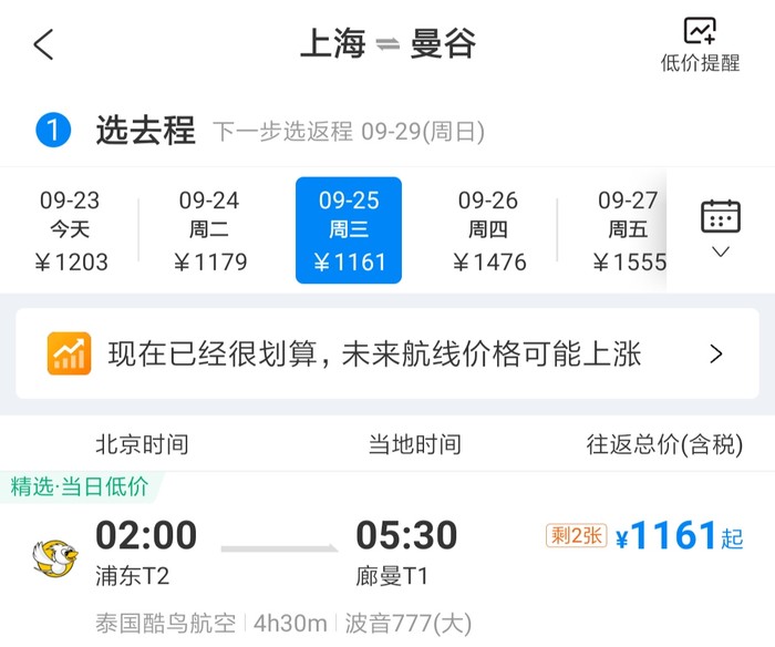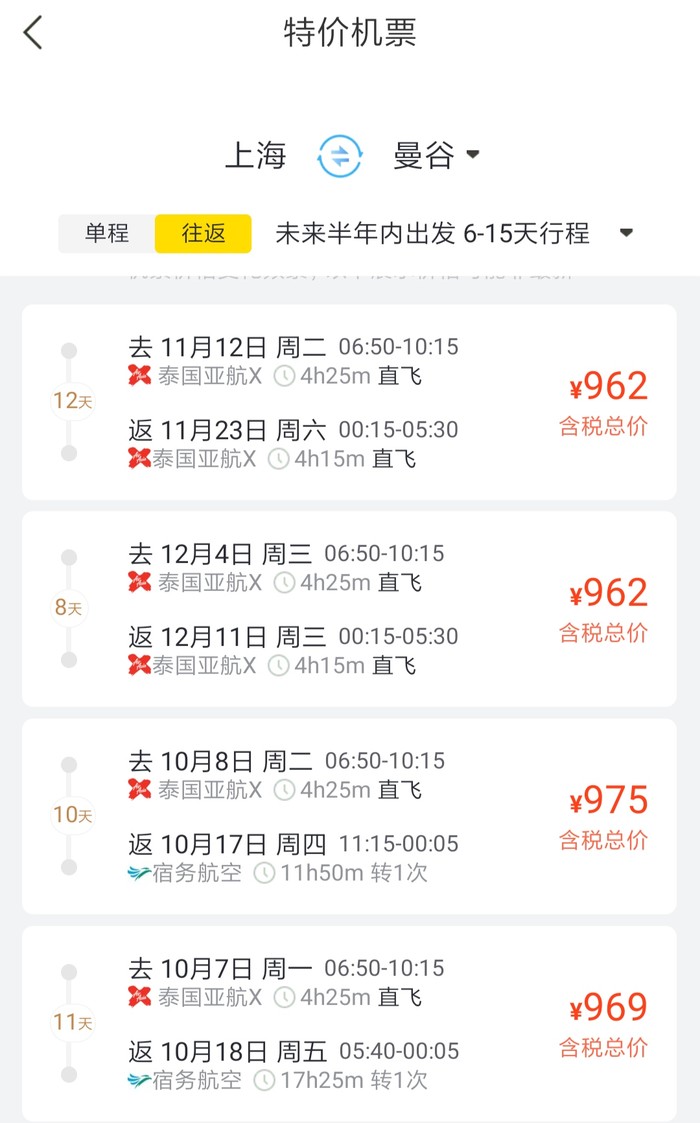 小编想实测官网价,奈何一直加载不出来......那就以上海往返曼谷为例,官方活动价1200元起。