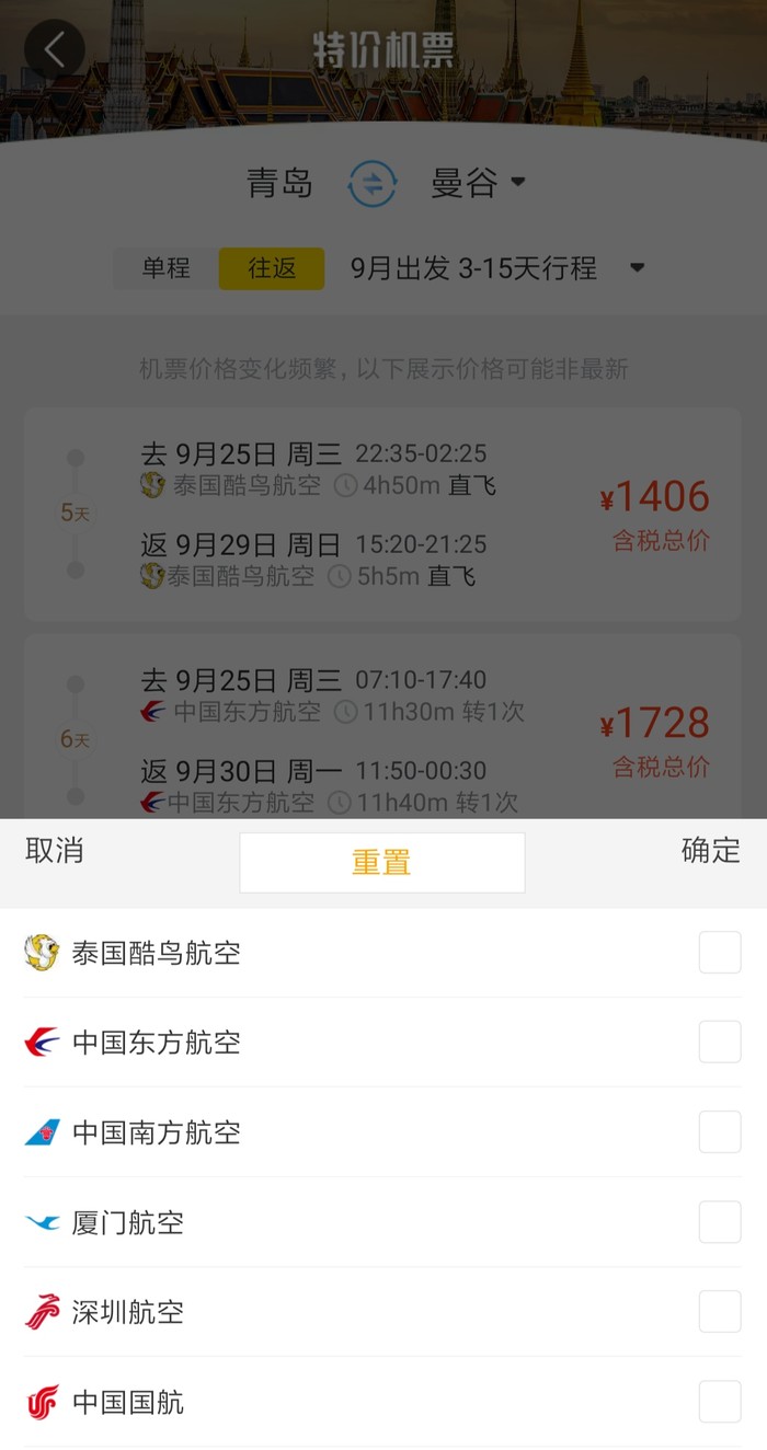 1、狮航、宿务航空、亚航并未覆盖青岛—曼谷航线,酷鸟航空航线上有优势