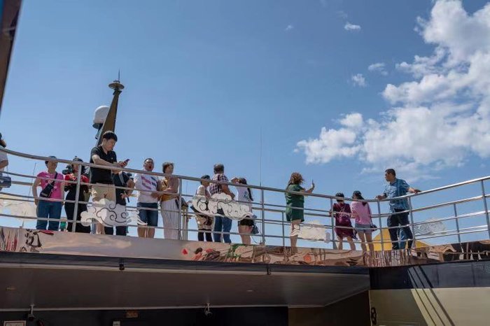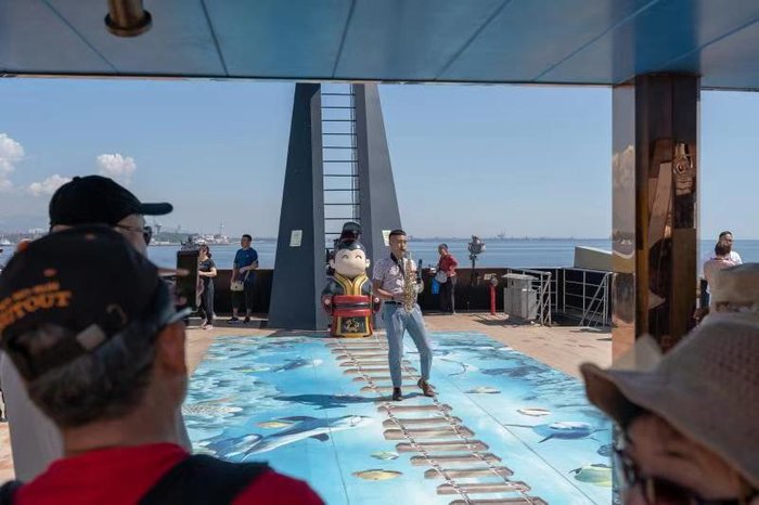 三层的露天观景台,小哥忘我地吹奏萨克斯,与浪声和鸣。此外,还有其他精心准备的表演,将感官带到极致。