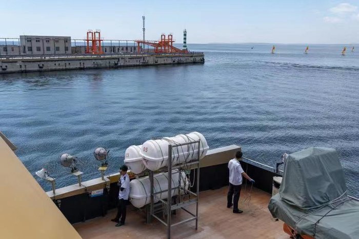 船尾的工作人员一直坚守岗位。安全舒适的航行,全靠这些烈日炎炎下的工作人员。