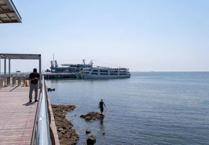 游船的速度渐渐变缓,东山码头一片热闹,载满人的小船在岸边跃跃欲试,大人们挽起裤管,争相下水,在浅滩上寻找着海鲜的踪迹。