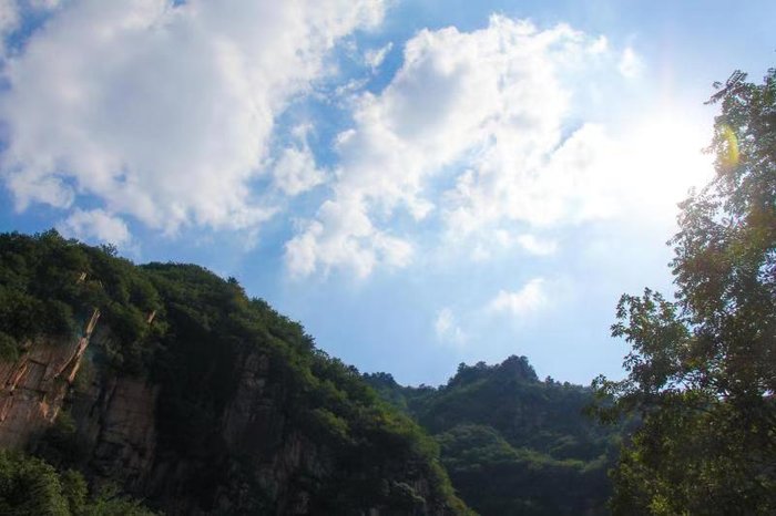 入秋时节的飞天谷,退去夏日炎热,更添飒爽之美,风拂叶动,偶有几片叶子悠悠坠落,似是挽留前来游玩的朋友。