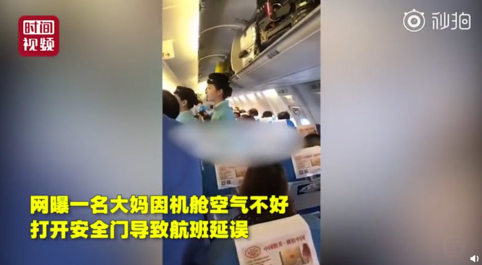 @时间视频:9月23日,网曝一大妈乘厦门航空,因太闷将飞机安全门打开。24日, 厦航工作人员表示,该乘客落座时,乘务员已提醒勿触碰应急手柄,但乘务员转身后,该乘客仍旧触碰开关。随后该乘客被警方带走,航班延误约1小时。