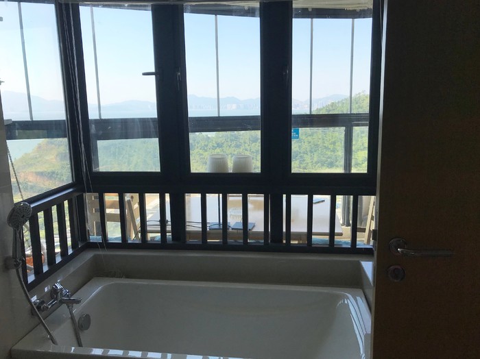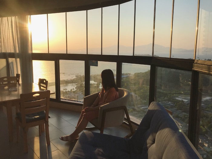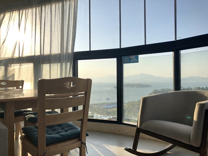 最喜欢要数阳台,全透明落地玻璃窗,九月的天,海风吹进来非常舒适,空调都不需要开了,坐在沙发床或者摇摇椅上聊聊天再适合不过了。