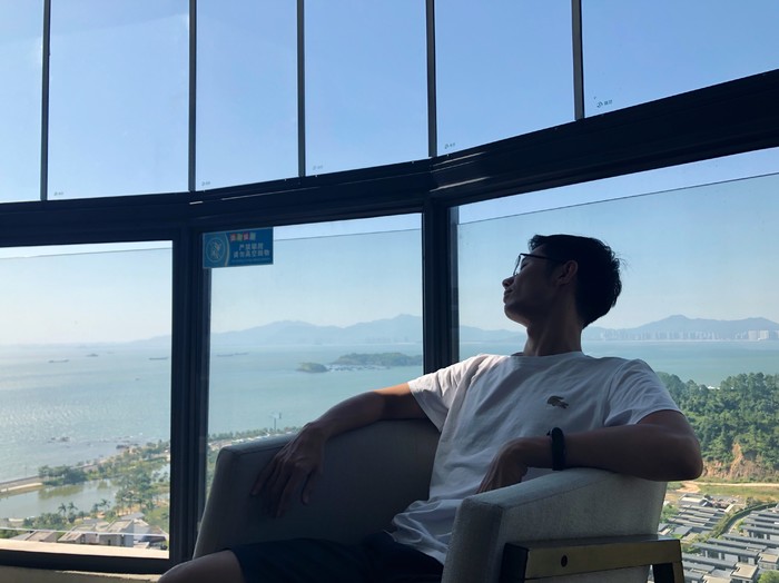 晚上的阳台依然被海风眷顾着,坐着闲聊一下真的太舒服了。