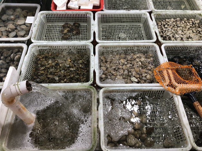 海鲜种类还是很多,价格各异,看好可以适当砍价,但是称重和算总价的时候一定要留心了。老板爽朗地接受砍价,但是算总价时不厚道多加50元进去,被发现后又说按原价了。提着海鲜到了附近的餐馆加工,不同做法不同价格,商量好以后等上菜。