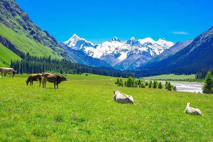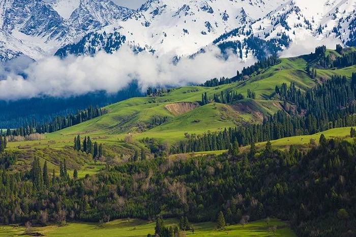 恰西蒙古语意为萨斯,是“小庙”的意思。恰西位于巩留县的东南部山区,小吉尔噶郎河支流——恰西河的中游,是国家森林公园。这里山峦起伏,绿草如茵,既有草原的辽阔,又有溪水的柔美。既有群山的俊秀,又有松涛的气势。独特原始的自然风貌,向世人展示了天山西部的一片净土,感受绿野中的心灵牧场。