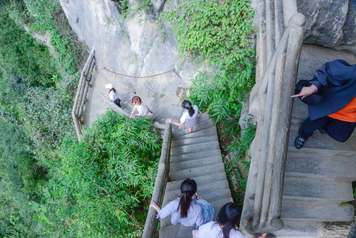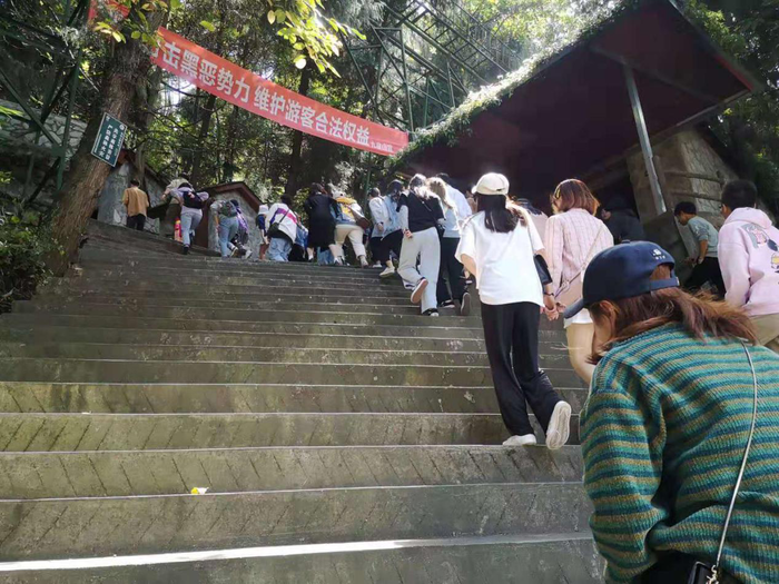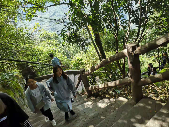 看完表演回到索道口向玻璃栈道出发,依然要爬山走梯梯,经历了风雨才能见彩虹,为了拍好看的照片,看好看的风景,再陡的梯梯也要爬。