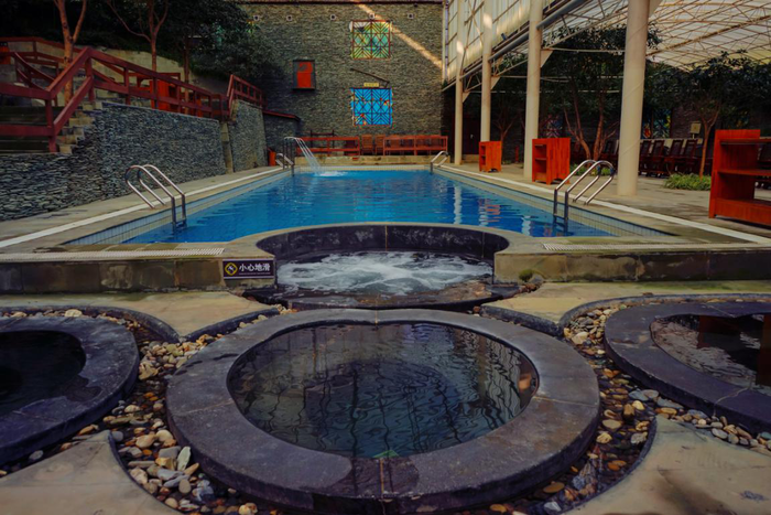 温泉分为大小、温度不同的汤池、躺进去洗去一身疲惫,我也只敢在中温里泡泡,高温温泉简直要把我烫秃了皮
