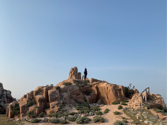沿着塔玛线往北走最东边是佛手石,一眼望去佛手石后面是蔚蓝的大海,偶尔海上漂着一两只渔船,这里是看海上日出的绝佳地点,当然懒癌晚期患者看日落也别有一番韵味。