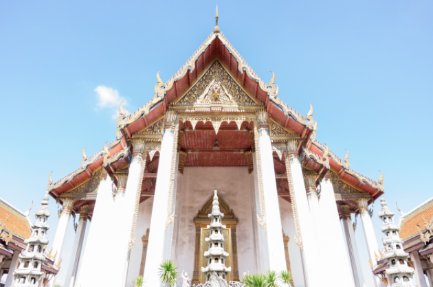 泰国曼谷的老城区,就有这样一座国家一级寺庙,苏泰寺。寺庙是拉玛一世的时候开始建造的,也就是1807年。听当地人说,当初在建造这座寺庙时,花费了40年时间,直至拉玛三世1847年,才完全竣工。这座耗费了3代人心血的寺庙,如今却成为了泰国最冷门寺庙之一。没有旅行团前来,散客更是少得可怜。它唯一能让游人记住的便是门前的那座红色的高秋千,如今也成为了曼谷的标志。