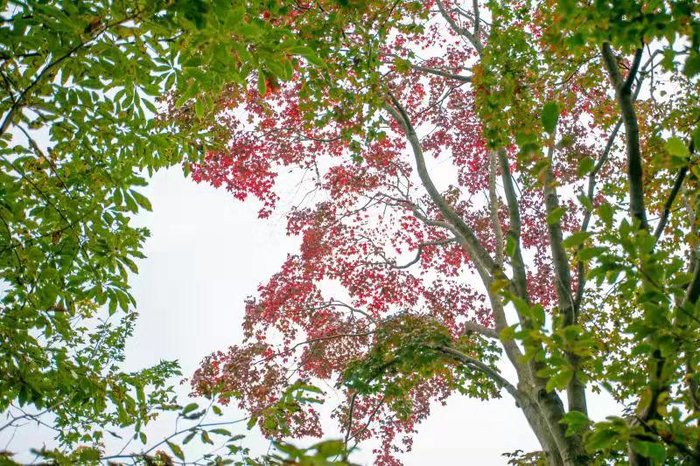 10月份正好赶上国庆节,趁着假期可以去看看景区内的彩林,我们去的时候都有浅浅的红润,估计10月份去的时候正好可以看看彩林