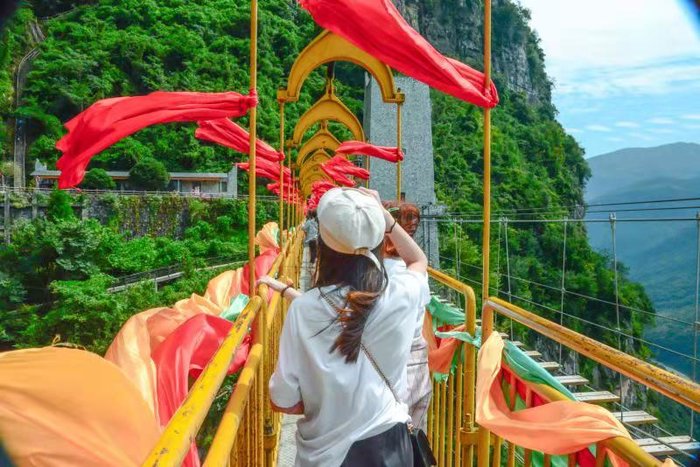 景区主要交通有三条索道,上山的云中羌寨索道和到后山的羌情园索道必买,洞口索道可买可不买,有老人还是建议买,喜欢挑战或刺激的可以选择走绝壁栈道去情人桥,一路的景色还是很漂亮的