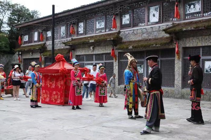 后山羌情园婚礼必打卡的地方,要想被列入过非遗的肯定差不到哪里去,婚礼不像是现代式的,而是羌式婚礼,我第一次看到也是被惊艳到了,没想到婚礼还可以这样