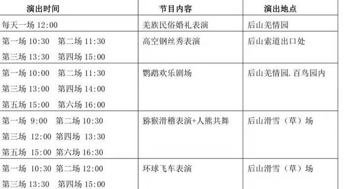 后山大部分都是表演,所以时间要安排好观看表演,配上图安排一下