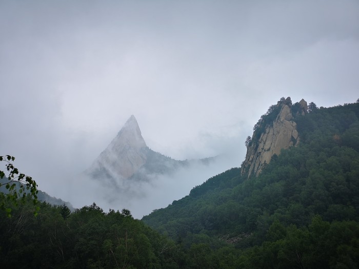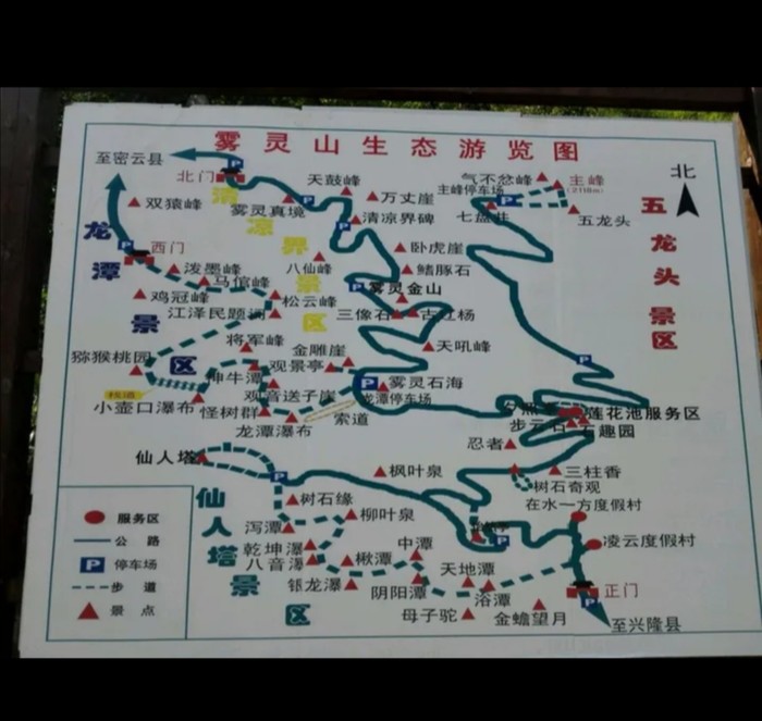 - 雾灵山共分四个小景区,两个步行景区,两个能开车进入的景区。一早趁人少先开车到五龙头景区,步行一段到达主峰,可惜有些下雾,看不到远处的山峰。