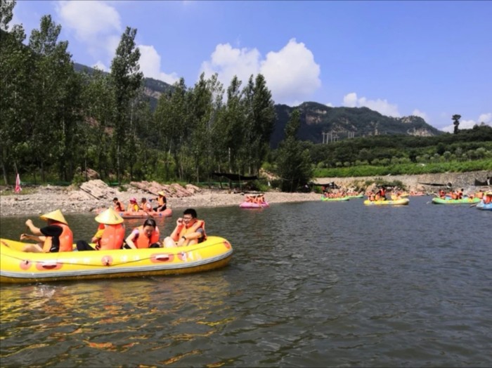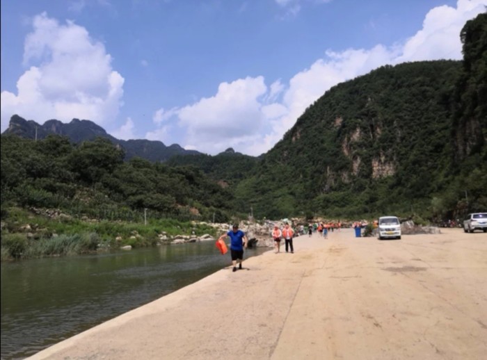 - 在网上看的红河漂流,要漂4-5小时,孩子一听疯了,准备好呲水枪,第二天一早直接换好游泳衣到漂流点,排队的人很多,大约半小时,坐上大巴车被送到坐船的地方,六人一船开始漂啊漂,果然漂的生无可恋,想停停不下,孩子可是玩儿美了。