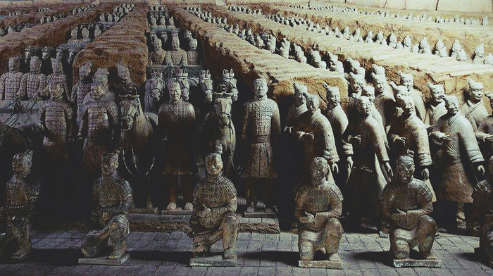 秦始皇兵马俑,第一批全国重点文物保护单位,第一批中国世界遗产,位于今陕西省西安市临潼区秦始皇陵以东1.5千米处的兵马俑坑内。1987年,秦始皇陵及兵马俑坑被联合国教科文组织批准列入《世界遗产名录》,并被誉为“世界第八大奇迹”。
