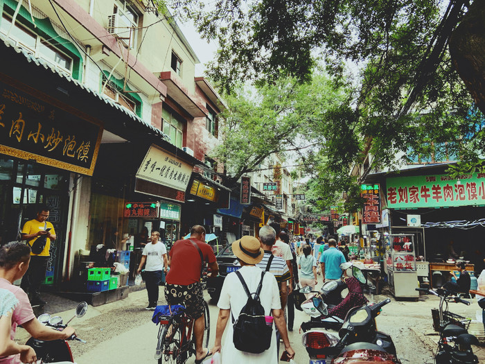 如果你有在西安生活的朋友,或者有看过其他攻略,应该有不少人会向你推荐吃小吃去洒金桥,因为这里人不多、便宜、正宗。洒金桥位于陕西省西安市莲湖区的回坊内,其实就在回民街不远的地方,本君曾经很深入的逛过这里,得出的结论是这里是一大片回民生活的区域,在这片区域里,回民街跟洒金桥都只是这里的一小部分。跟回民街的商业化不同的是,洒金桥更像是当地居民的生活区,这里有三座大古寺,还有很多古树、古建筑,看不懂的老经文,原因在于洒金桥老住户很大一部分从明朝起就定居于此,并且至今不曾迁居。