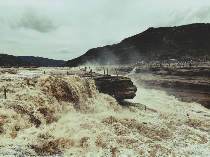 从西安市区出发,坐车一般五个多小时到达陕西壶口瀑布风景区。 壶口瀑布是中国 第二大瀑布,世界上最大的黄色瀑布。 黄河奔流至此,两岸石壁峭立,河口收束狭如壶口,故名壶口瀑布 。进入景区门口,乘坐景区大巴车到达壶口瀑布的观赏点,一下车,就听到了景区里播放着歌曲《保卫 黄河 》。 壶口瀑布 有一个主瀑,和多个副瀑,这里是我国第四套人民币50元背面图案的取景地点,黄色的河水汹涌澎湃,流下峭壁,水声浑厚,你会深刻的领略到什么叫黄河大合唱。 壶口瀑布西临陕西省延安市宜川县壶口乡,东濒山西省临汾市吉县壶口镇,为两省共有旅游景区,我们站在陕西这边,河的对面就是山西省,我们还能看到对岸山西省的观景台上同样有不少游客拿着相机对着瀑布拍照。在壶口瀑布建议游玩时间大概2小时。