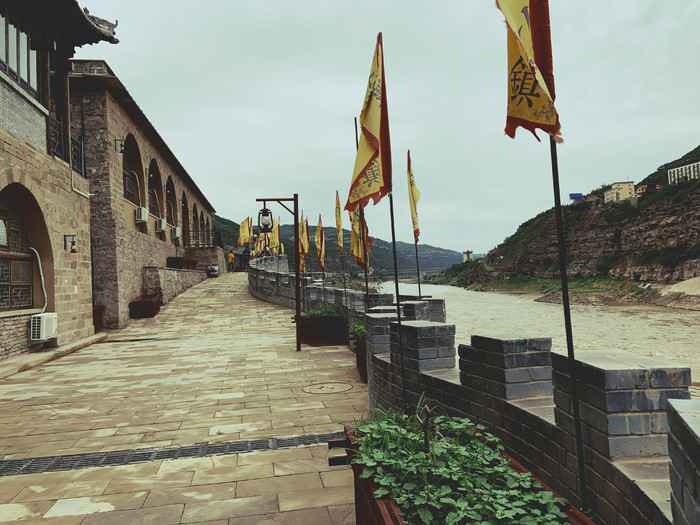观赏完毕乘车来到下方的古渡口小镇吃午饭,古渡口小镇位于 陕西 省 延安 市 宜川 县 黄河 壶口瀑布景区的圪针滩古集镇旧址,又名圪针滩古渡口小镇。它是利用壶口原有的古渡商贸集市文化,以 陕北特色窑洞建筑高低错落布局,进行局部空间的整理和建筑改造,打造的 黄河岸边别致的民俗小镇,其最大限度地保留了原始村落的肌理和布局。