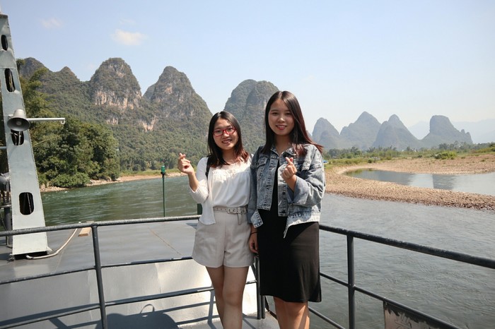在旅程中,记忆比较深刻的风景有漓江,银子岩。到漓江的那天时间比较早,天气也很给力,坐在船上往外看,就是蓝天白云绿水青山,让人心情舒畅。这大概就是“桂林山水甲天下”的真实写照吧。银子岩转一圈大概半个小时,配合着想象,或许你会看到很多景象,哈哈!