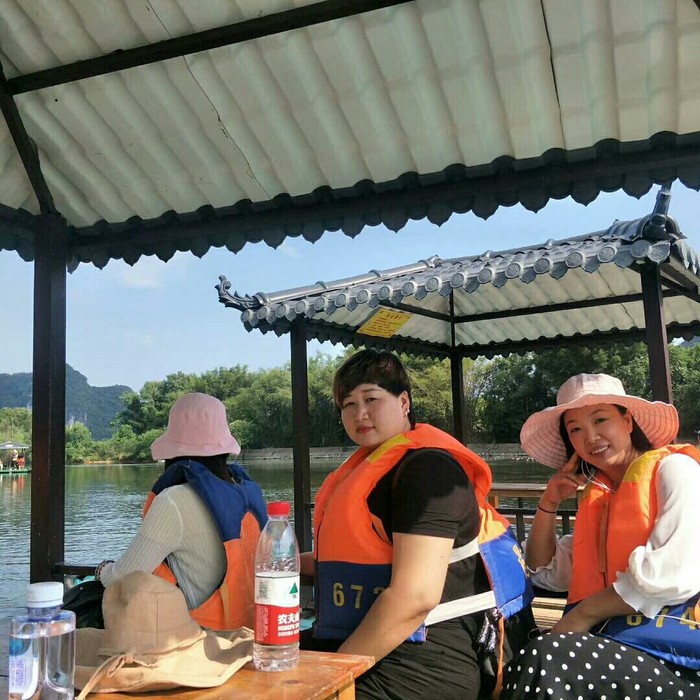 【人物篇】这次的团友来自的地方比较多,重庆的,北京的,上海的,东北的,新加坡的。其实还蛮喜欢这样的散客团,因为团友都来自不同的地方,聊天的时候可以了解到不同地方的风土人情,也可以认识到不同地方的朋友。第一天认识的是一对新加坡夫妇,他们给我的感觉跟去年在华东遇到的一对山东夫妇很像,所以格外有亲切感。第一天对自己的团友并不熟悉,也认不得多少,首先认到的就是他们两了。在跟他们聊天的时候,他们也说只认得我两,因为我两好像是团里最年轻的,哈哈~不过我们也只同行了一天,第二天就在两个不同的团了。行程来到第四天的时候,因为在遇龙河坐竹筏,就认识北京跟重庆的几位小伙伴,他们兴起跟周围的竹筏打起水仗了,打水仗期间有些小插曲,但并不影响大家的热情,还被小伙伴们滑稽的言语逗得大家笑足全程。感觉这一场水仗给所有的团友都带来了一场“视觉盛宴”,周围的竹筏都纷纷拿起手机拍照录视频,坐完竹筏回到车上,才发现大家手机全是我们竹筏打水仗的视频,充满了欢声笑语,感觉是把快乐带到大江南北了,哈哈~有年长的团友说,是年轻的团友给他们的旅程带来了更多的欢乐。