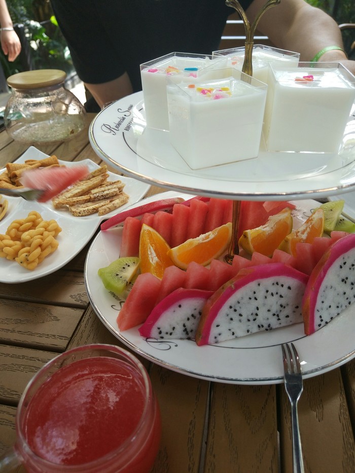 在行程的最后一天,去了象鼻山,然后在景区享受了一顿下午茶,跟另外两位团友聊起来了,他们的孩子跟我们差不多年龄,聊天中,可以感受到,他们大概是企业高管,有学识,注重孩子的教育,还很有仪式感地干了个杯,敬这相识的缘分。