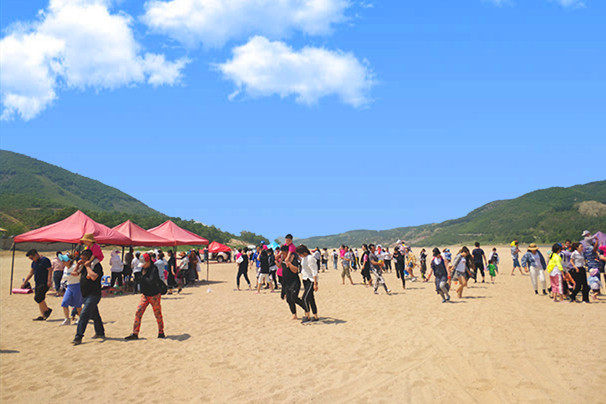 金沙谷风景区位于辽宁省丹东东港市黑沟镇大洋河棋盘地,有着“辽东小桂林”的称号,沙滩绵长柔软,水质纯净,淤积少、风和日暖,沙滩杂质少,在这里参加露营活动,可以尽情享受到天然的淡水沙滩美景。沙滩上面林木茂盛,树下绿荫,避暑休闲。平缓宽阔的沙滩,组织撕名牌游戏再适合不过。这里有跑马场,价格便宜,我们可以借机尝试纵马扬鞭的感觉。到了夜晚,清风徐徐,在沙滩烧烤,喝啤酒可谓是爽到极致。当清晨的阳光将你唤醒,你便可沿着大洋河的万米沙滩,欣赏朝阳下的柔美风景,这是一条比较经典的风景线。丰富旅游资源 犹如仙境般景色 世旅游爱好者绝佳首选之地!