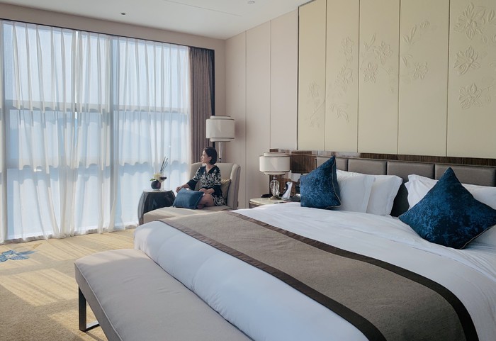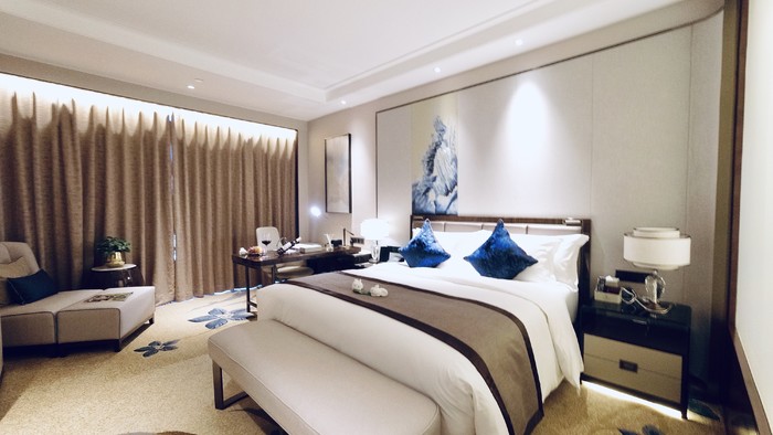 入住后,才发现房间内大有乾坤:时尚舒适两不误,充分展示设计师的别出心裁,房间内配以水的包容、海的澎湃、千姿百态的山、清而不浊的兰等元素,休憩之余亦不乏陶冶情操。