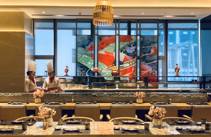 中午相约小姐妹们来到酒店二楼的,花之宴日韩料理,出电梯已经有穿和服的小姐姐热情接待,餐厅环境内尽显东瀛风情,典雅安静的用餐环境,非常适合聚会。