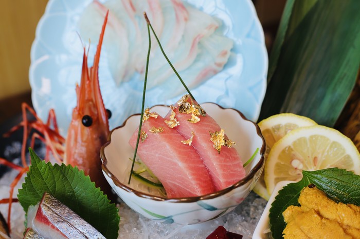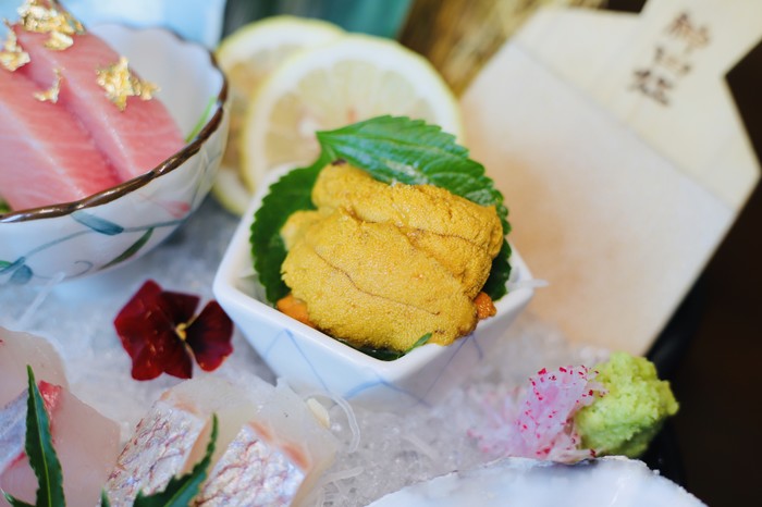 餐厅内的原辅料均选自日本进口,务求让客人们的味觉能品尝到来自樱花国的原汁原味,比如一道刺身拼盘,单从摆盘上已经赚足了眼球,宛如一盘艺术品一样,每一口都是刺身的鲜美交融,尤其是S小姐最喜欢的海胆,一口入魂。