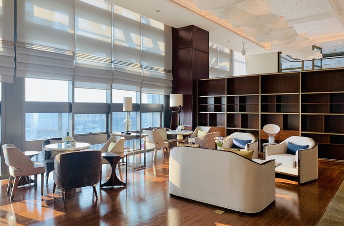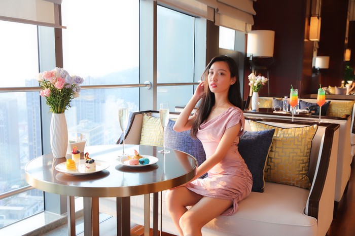 下午茶时间,来到酒店顶楼的行政酒廊,顺着网红旋转楼梯而上,不少小姐姐都忍不住在这打卡。