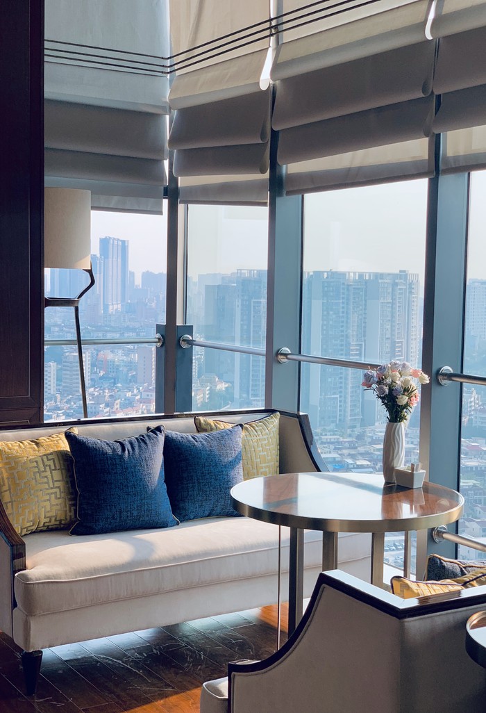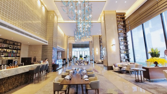 行程酒廊大面积的玻璃窗把宝安的城景尽收眼底,舒适的沙发雅座,精致的点心,再配上一杯香槟,享受着窗外的日落,在美兰酒店收获了一段妙不可言的闲暇时光。