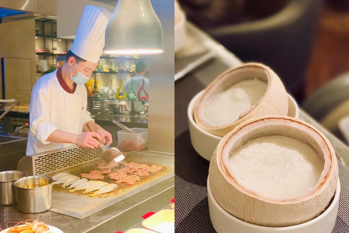 不少客人都是西餐厅的常客,现在过来用自助餐的朋友提前预定:午餐赠送:龙虾+椰子炖奶,晚餐赠送:龙虾+蒜茸生蚝+椰子炖奶。毫不夸张地说,吃完这三款每位客人赠送的美食,我都几乎饱了,诚意感人!