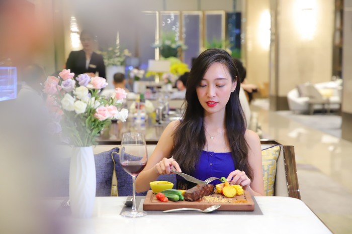 假如今晚不想吃自助餐?到扒房用餐也是很好的选择,尤其是情侣约会更享受安静环境,水晶蓝叶子错落有致地依附在金属线条上,营造了几分的浪漫。点上一份招牌推荐的果木烤牛扒套餐(238元/份、买一份送一份,每月2号、16号为会员日特惠抢购)配搭一杯美酒,跟心爱的人共享浪漫时光。