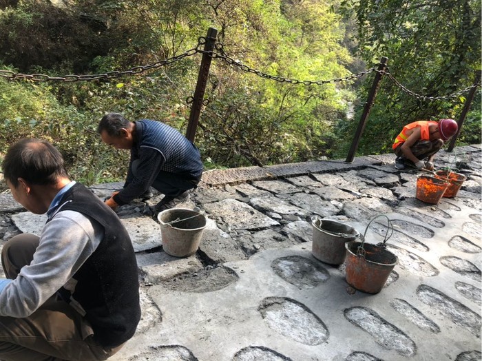 在修路的徒步道