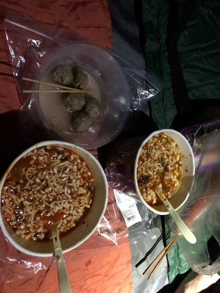 赛后领完补给,找小姐姐拉身,吃了碗泡面,暖暖身子,最后回到青旅。