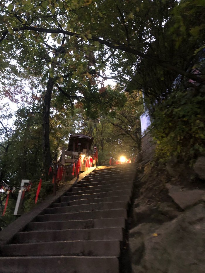 美景当前,放慢了脚步,此时已到了傍晚6点,路灯准时亮起,夜爬华山也是极好的,可惜这次没能夜爬。