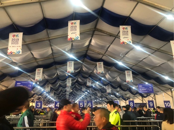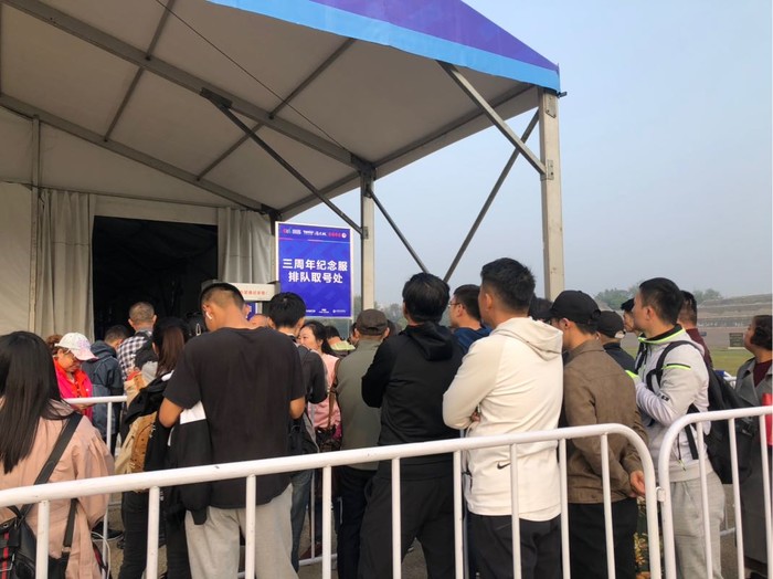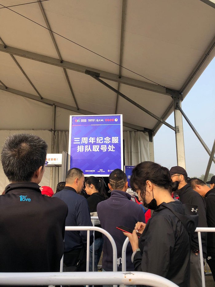 9:50进场,然而,等我们绕过一圈又一圈的栏杆,领完了有的没得,最后领衣服的时候,发现限量版的队伍无敌长,无奈还要赶动车的我们只能领了蓝色参赛服走人。