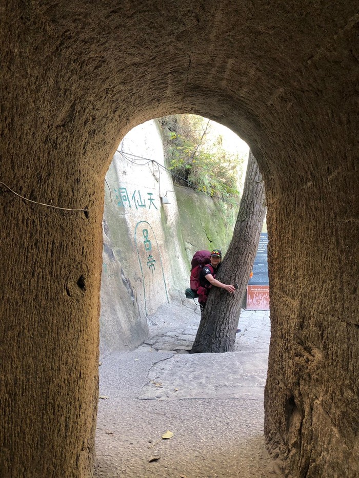 基本一次进去20个人,原路往返,目测等待还要两轮,趁着有人排队,我带着鱼儿轻装前往南峰顶峰及西峰。