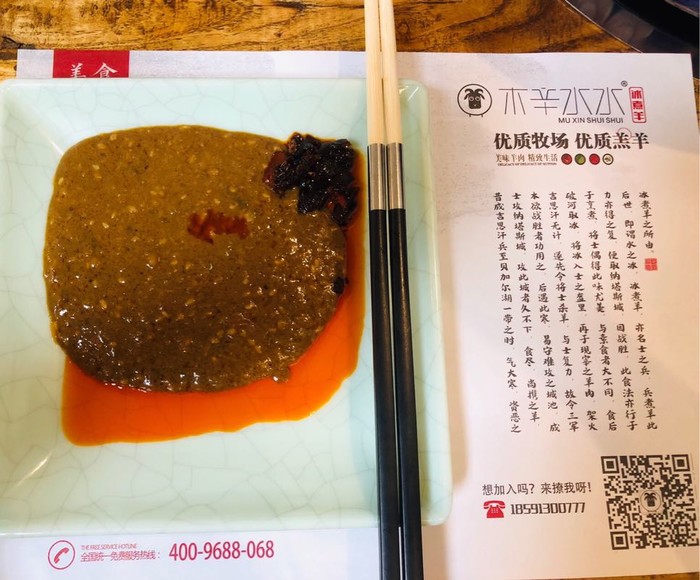 到了山脚直奔牙叔推荐的木辛水水冰煮羊吃羊肉