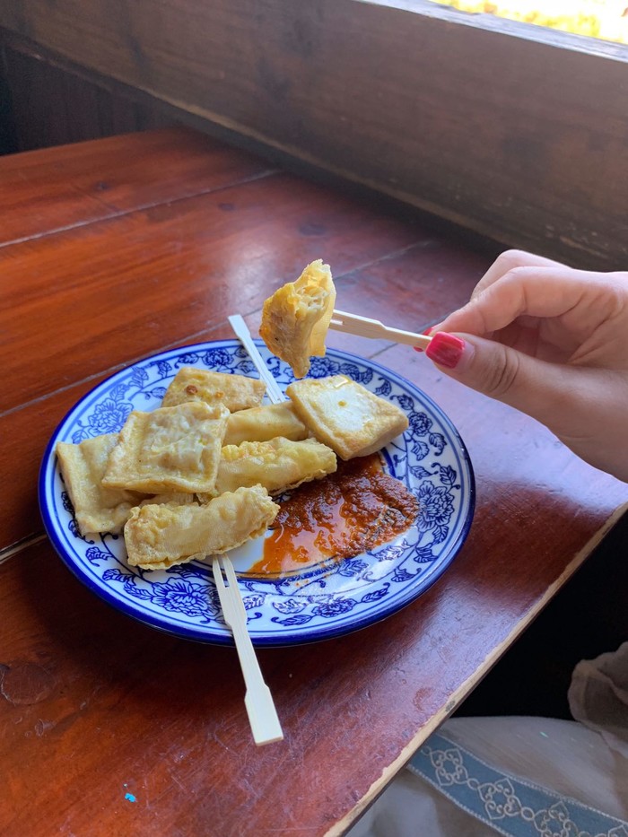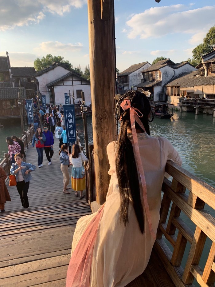 身为懒一代,还是没有太大的自我认知,想着睡到自然醒,结果一睡睡到了十点多,我们出门也差不多十一点了,今天原定就是去东西栅。所以草草吃完早餐后就去借汉服了,[奸笑]化妆+造型,另外还在她店里场景那里拍了一会儿,到真正出门去东西栅已经一点多了。我们是先去的东栅,因为想晚上在西栅酒吧街玩。东栅相对比较小一点,大概三小时可以玩完,在里面吃了一个超级好吃的肉肉,本来想着之后回去买的,可是因为早上赖床了,如果再不去西栅可能就赶不及,所以没有回头买肉肉~这个有点可惜,这是我在这次旅行吃过印象最深的一样美食了[色]
