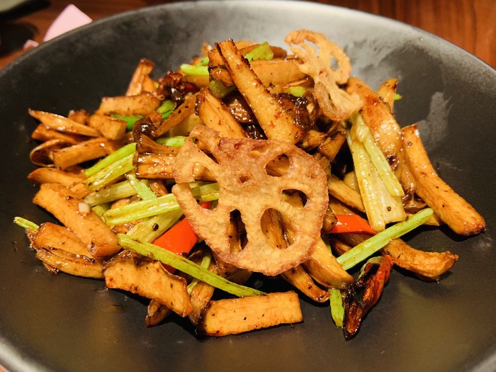 【炒菌莲藕】炒得香辣可口,外干里嫩,是本君重点推荐的素菜。