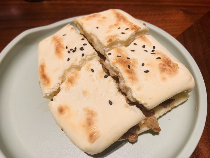 【肉夹馍】肉夹馍本来没打算点,只是店员在推销,所以就捧个场,但是说实在,这里的肉夹馍一般般。
